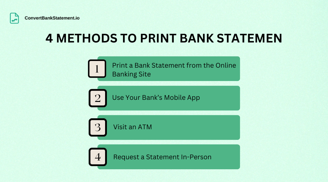 Printing a bank statement is easy! Whether online, via mobile apps, at ATMs, or in person, follow these steps to get a copy of your bank statement for loans, visas, or personal records.
